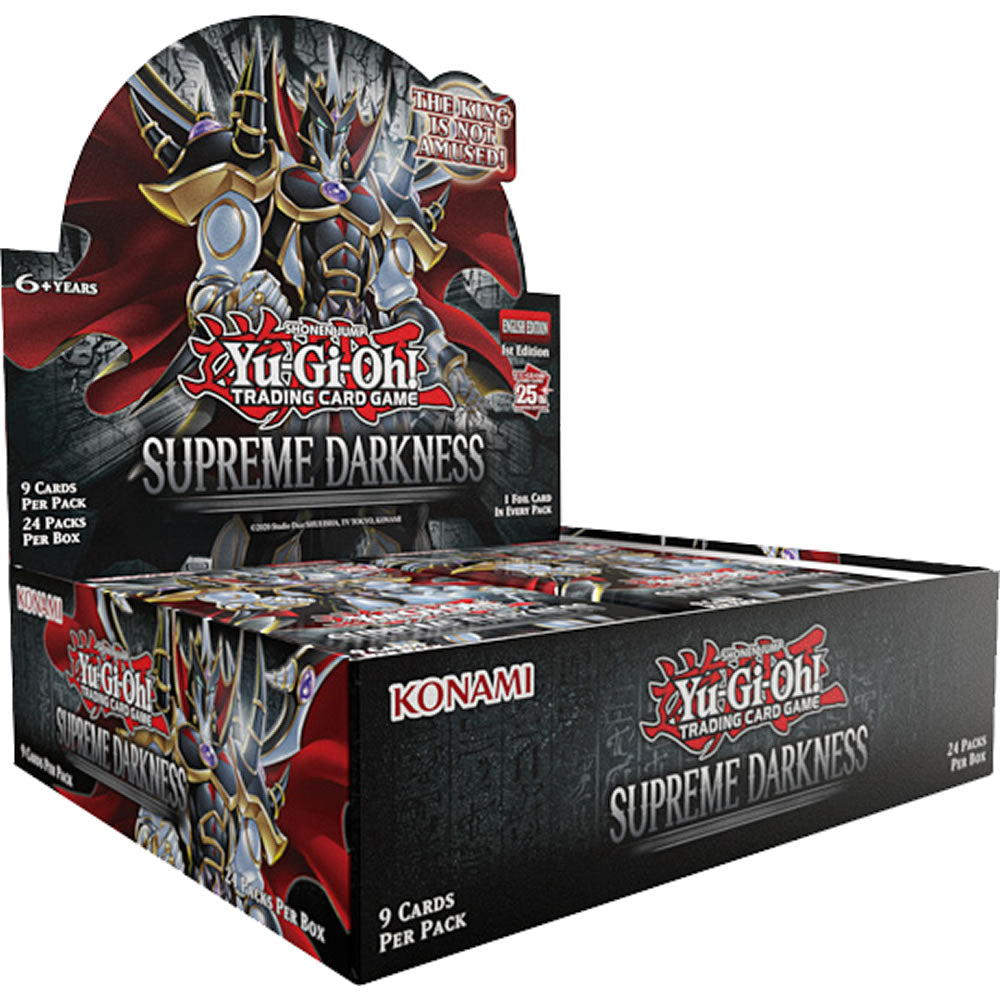 Supreme Darkness has 101 new cards in total, including a brand-new World Premiere theme that you won't want to miss. It also continues the 25th Anniversary Celebration by including 25 Quarter Century Secret Rares, including 1 special card!