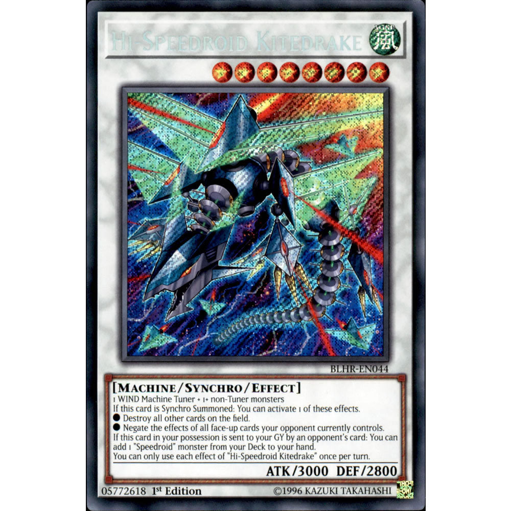 Card Text: 1 WIND Machine Tuner + 1+ non-Tuner monsters. If this card is Synchro Summoned: You can activate 1 of these effects. :- Destroy all other cards on the field. :- Negate the effects of all face-up cards your opponent currently controls. If this card in your possession is sent to your GY by an opponent's card: You can add 1 "Speedroid" monster from your Deck to your hand. You can only use each effect of "Hi-Speedroid Kitedrake" once per turn.