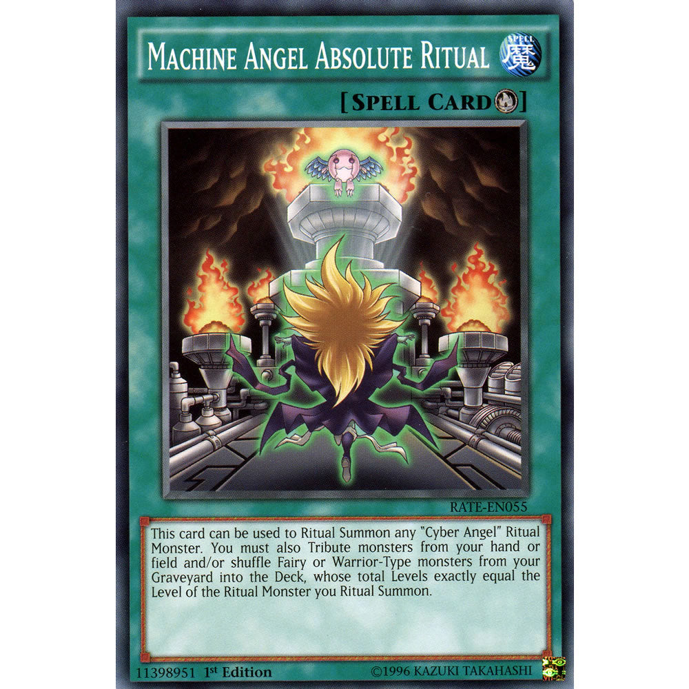 Card Text: This card can be used to Ritual Summon any "Cyber Angel" Ritual Monster. You must also Tribute monsters from your hand or field and/or shuffle Fairy or Warrior-Type monsters from your Graveyard into the Deck, whose total Levels exactly equal the Level of the Ritual Monster you Ritual Summon.