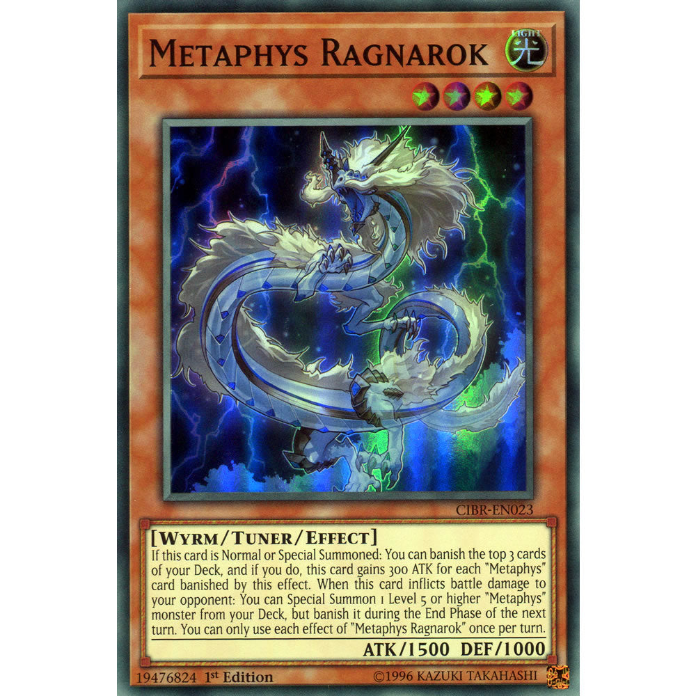 Card Text: If this card is Normal or Special Summoned: You can banish the top 3 cards of your Deck, and if you do, this card gains 300 ATK for each "Metaphys" card banished by this effect. When this card inflicts battle damage to your opponent: You can Special Summon 1 Level 5 or higher "Metaphys" monster from your Deck, but banish it during the End Phase of the next turn. You can only use each effect of "Metaphys Ragnarok" once per turn.