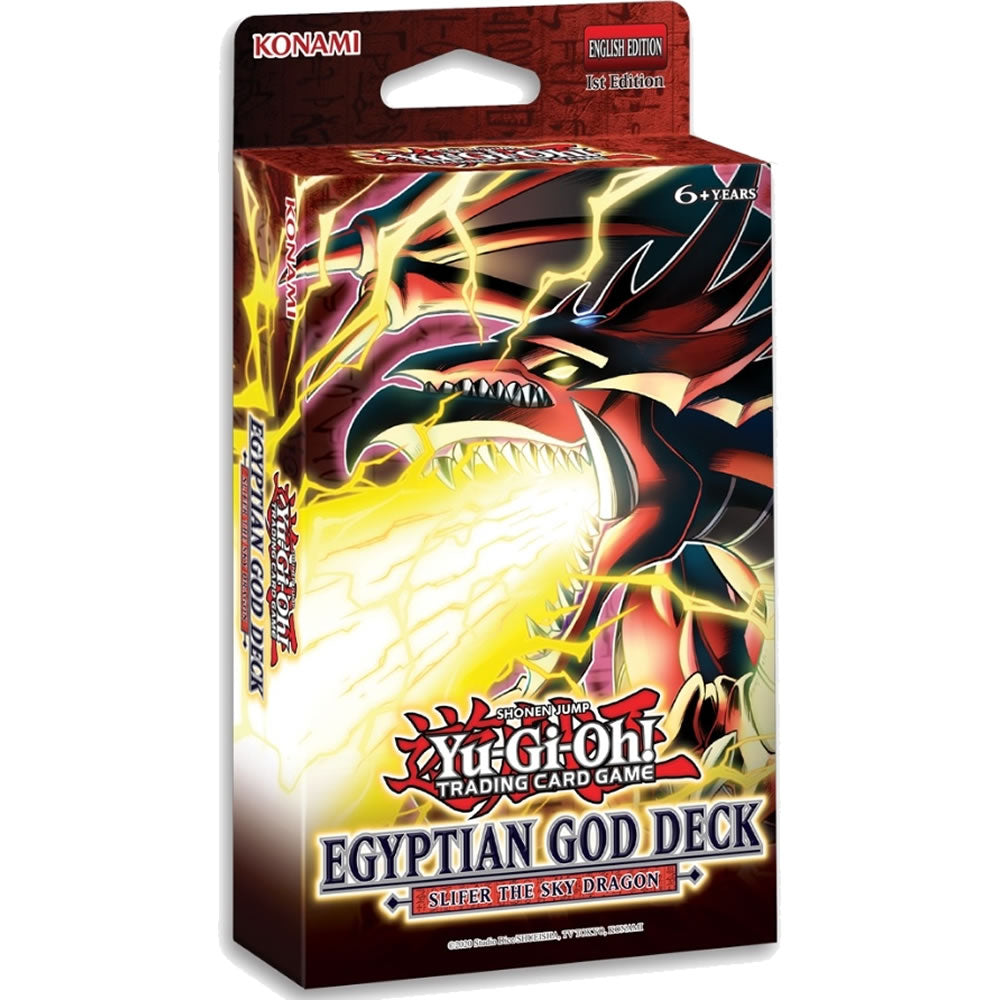 Each Egyptian God Deck is 40 cards total and includes 1 Egyptian God Card and 5 new cards - 4 unique new cards as well as 1 copy of Soul Crossing, a brand-new Quick-Play Spell Card included in both Decks that lets you Tribute Summon your Egyptian God Card by Tributing your opponent's monsters!