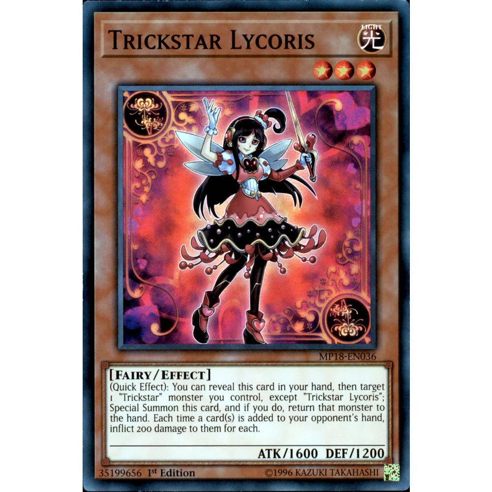 Card Text: (Quick Effect): You can reveal this card in your hand, then target 1 "Trickstar" monster you control, except "Trickstar Lycoris"; Special Summon this card, and if you do, return that monster to the hand. Each time a card(s) is added to your opponent's hand, inflict 200 damage to them for each.